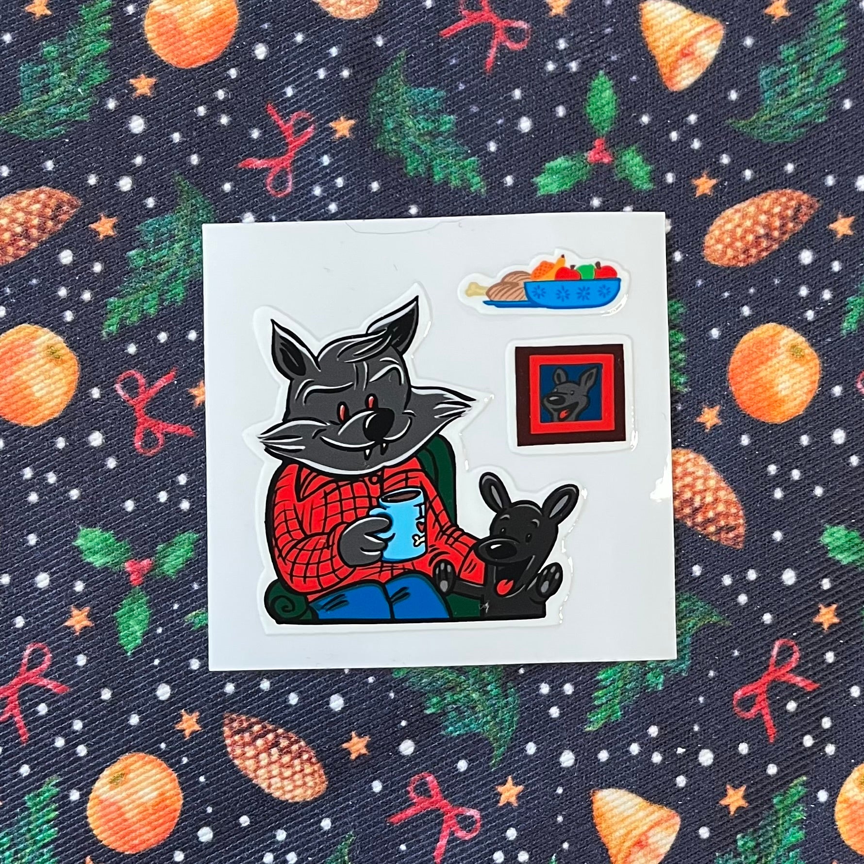Midwinter Windows Wolf Puppy Christmas Holiday Feast Coffee Dog Vinyl Stickers 3” 5” Transfer Sheet